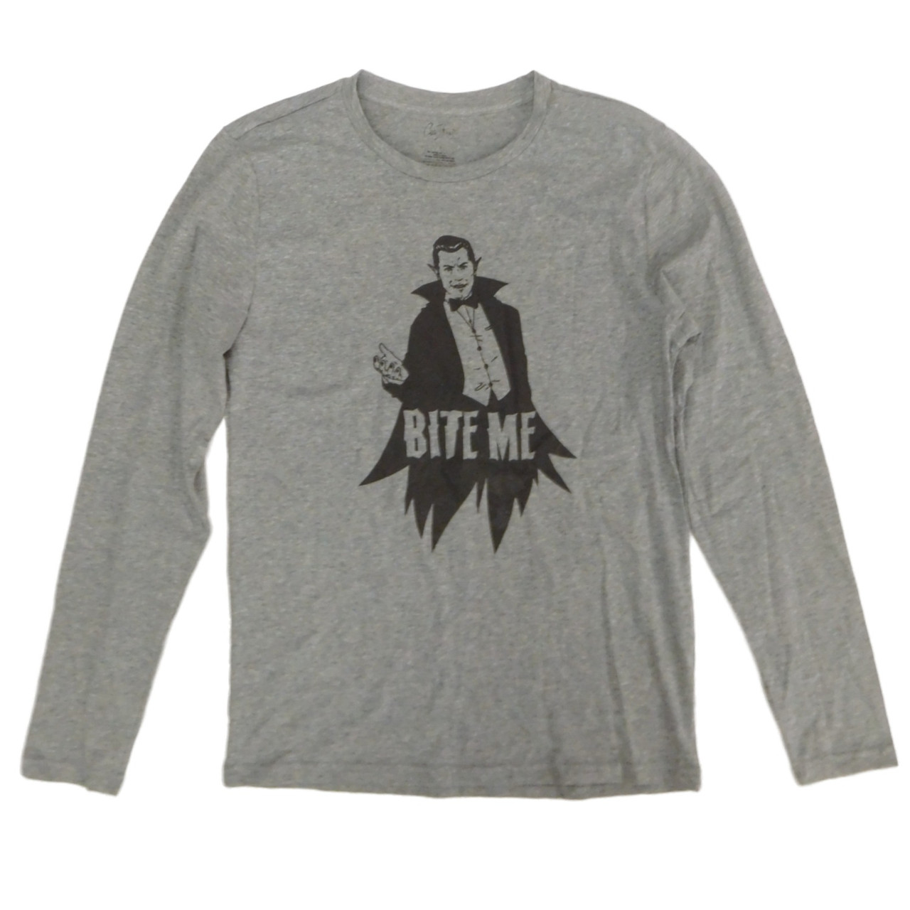 - Young Mens Gray Heather Bite Me Dracula Vampire Long Sleeve T-Shirt Halloween