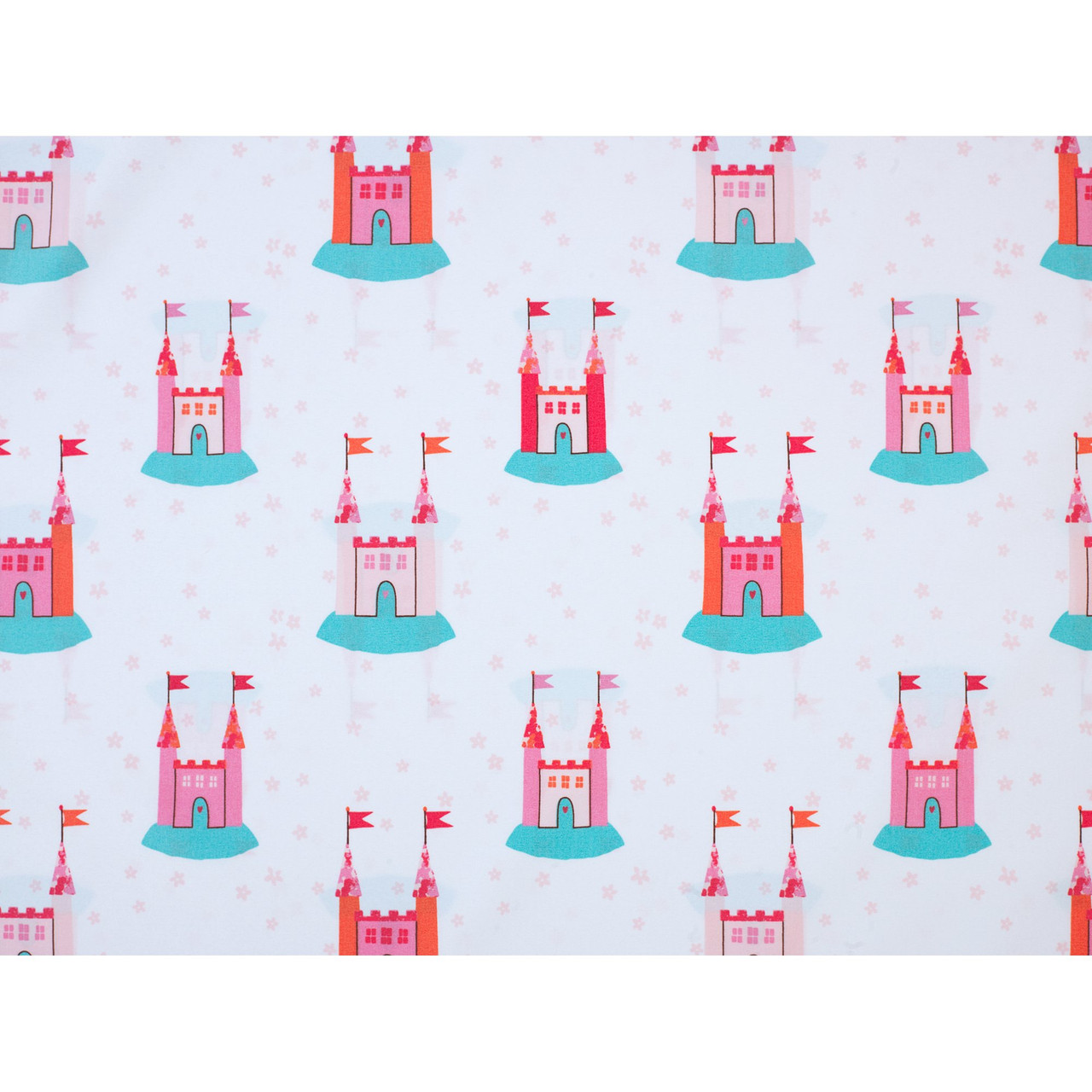 - Pattern of pretty pink and orange castles on a white background